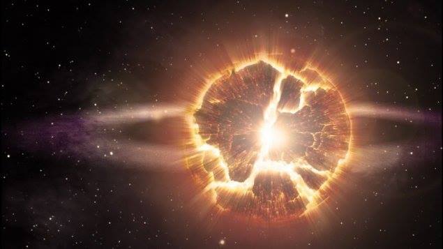 If we picture a star moments before its Supernova explosion, it looks like a layered onion. The outer layers are still made of hydrogen continuing to fuse into helium, the next layer is helium fusing into carbon, the next is carbon into silicon and oxygen and the core is silicon and oxygen fusing into iron.